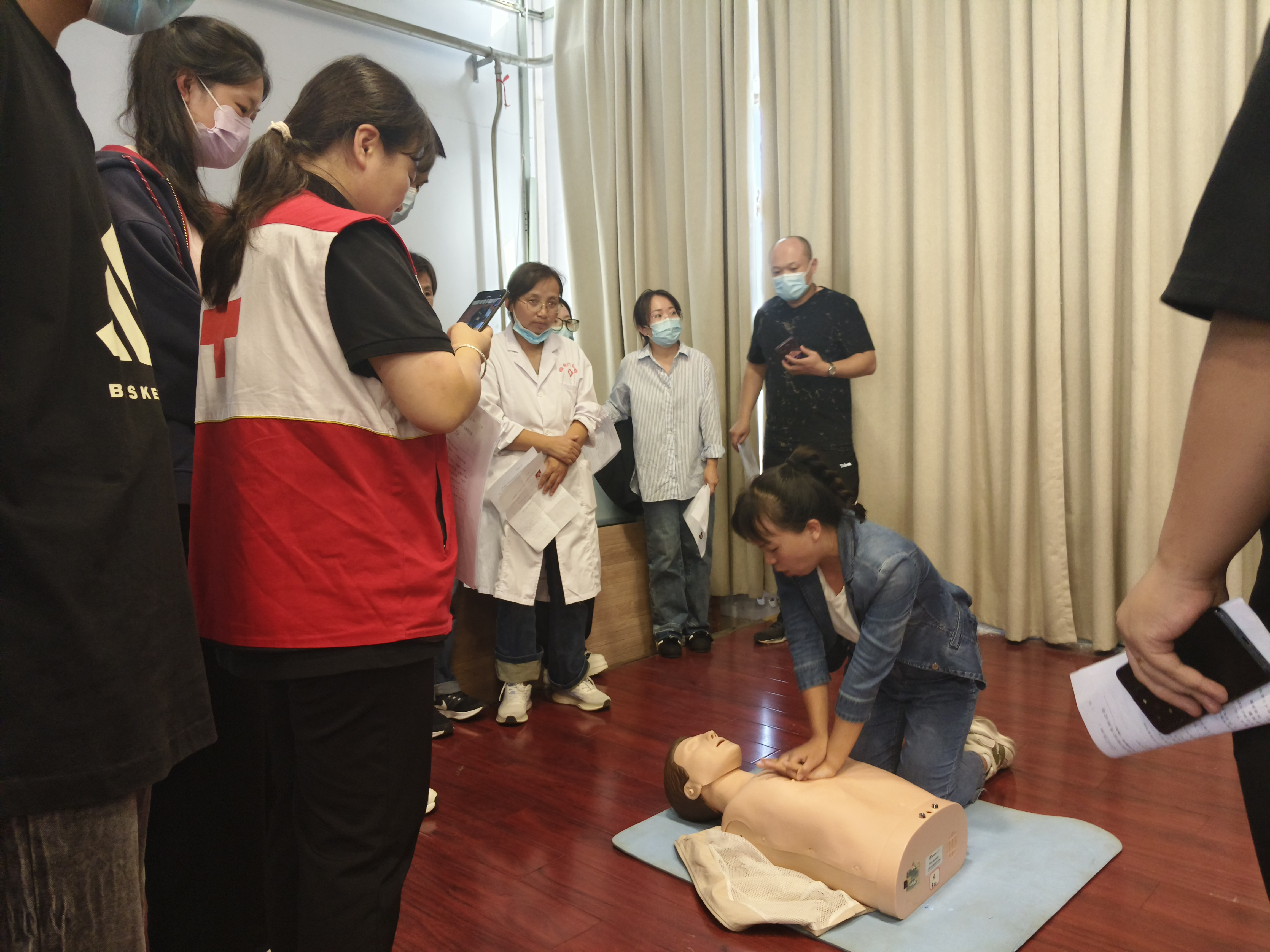本次培训采用“理论+实操+考核”一体化教学模式。参训师生前期通过线上平台完成理论学习,为线下实操打下基础。培训中,红十字会专业讲师结合真实案例,生动讲解了心肺复苏、AED使用等关键技能,并组织试卷考试巩固知识。