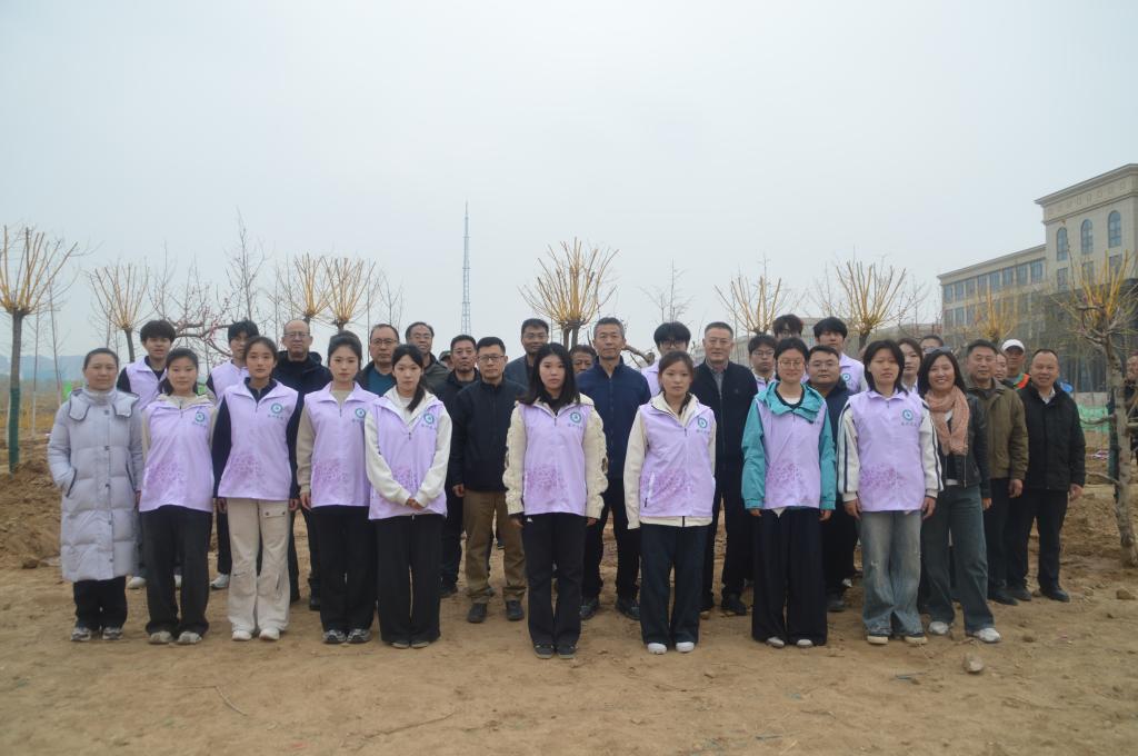 上午10时30分,活动正式开始。校领导与师生代表一同挥锹铲土、培土围堰、提水浇灌,现场分工明确、井然有序。后勤管理处工作人员全程值守,及时协调物资、引导人员、保障安全。活动尾声,全体参与人员在种植区前合影留念。